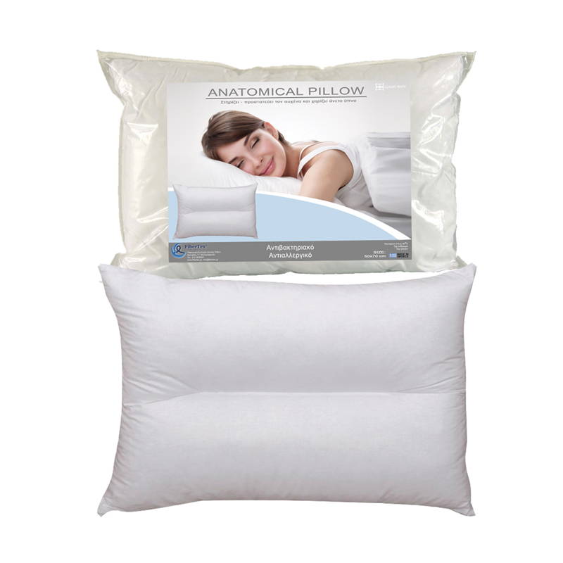 Μαξιλάρι Ανατομικό Αφρολέξ με γέμιση νιφάδες αφρολέξ και εξωτερικό κάλυμμα από 100% cotton Rib 35/35, με ραφή για στήριξη του αυχένα, Πλένεται στους 40 C.
